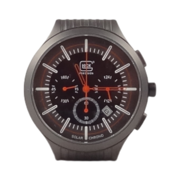 Robuste Solaruhr mit Titan‑Gehäuse, Saphirglas, 10 ATM Wasserschutz und Wechselarmbändern – perfekt für GLOCK‑Fans & Outdoor‑Einsatz.